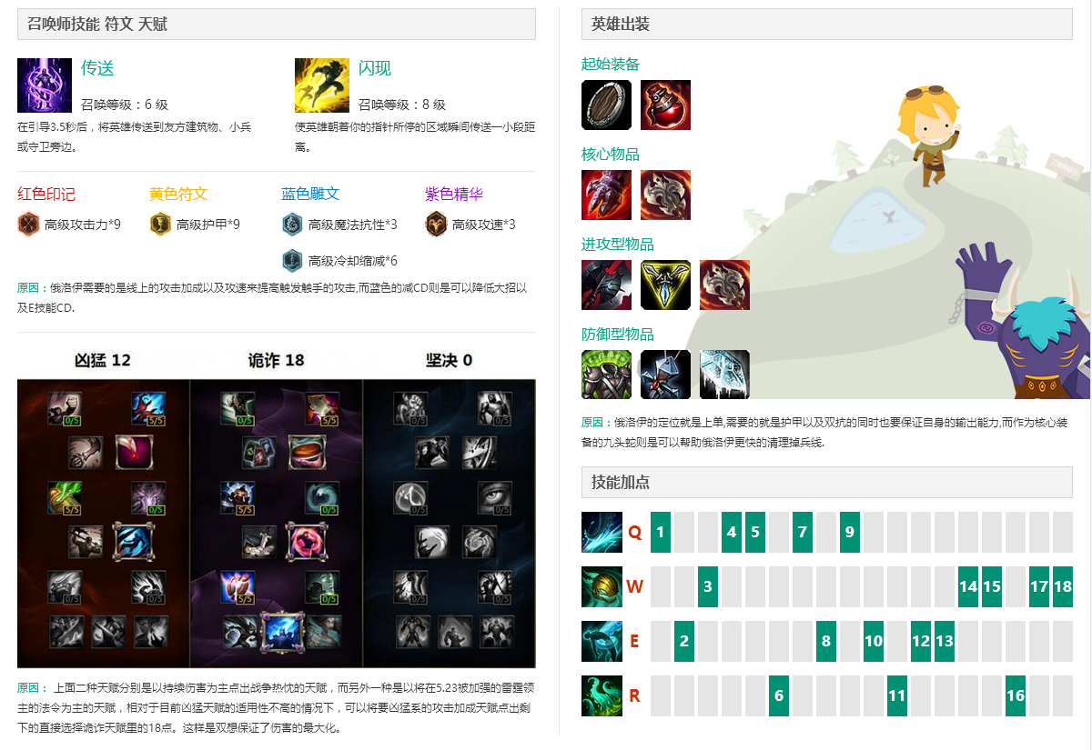 俄洛伊的Q技能是她的主要伤害来源,而E技能则是让俄洛伊拥有对对方英雄造成额外伤害的关键,所以这二个技能在前期需要优先点满.